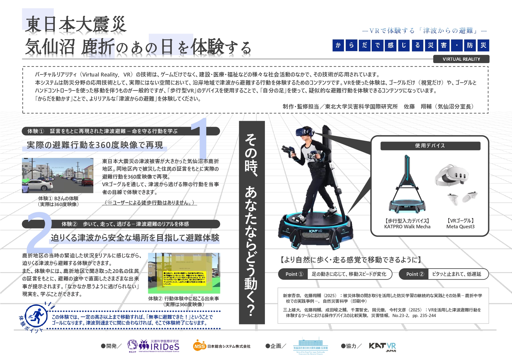 11月5日(水)から「世界津波の日特別イベント」の企画で「歩行型VRを利用して仮想空間で避難体験」が始まります。体験可能な日のスケジュールを以下に掲載いたしますので、この機会にぜひご参加ください。