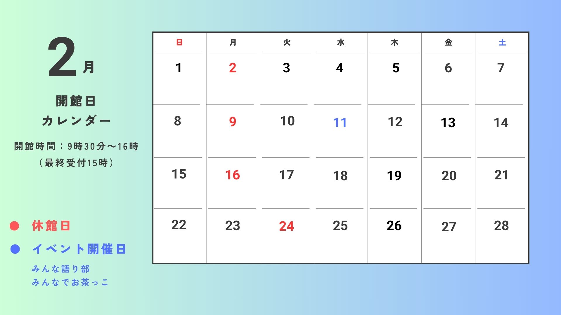 2月開館情報のお知らせ