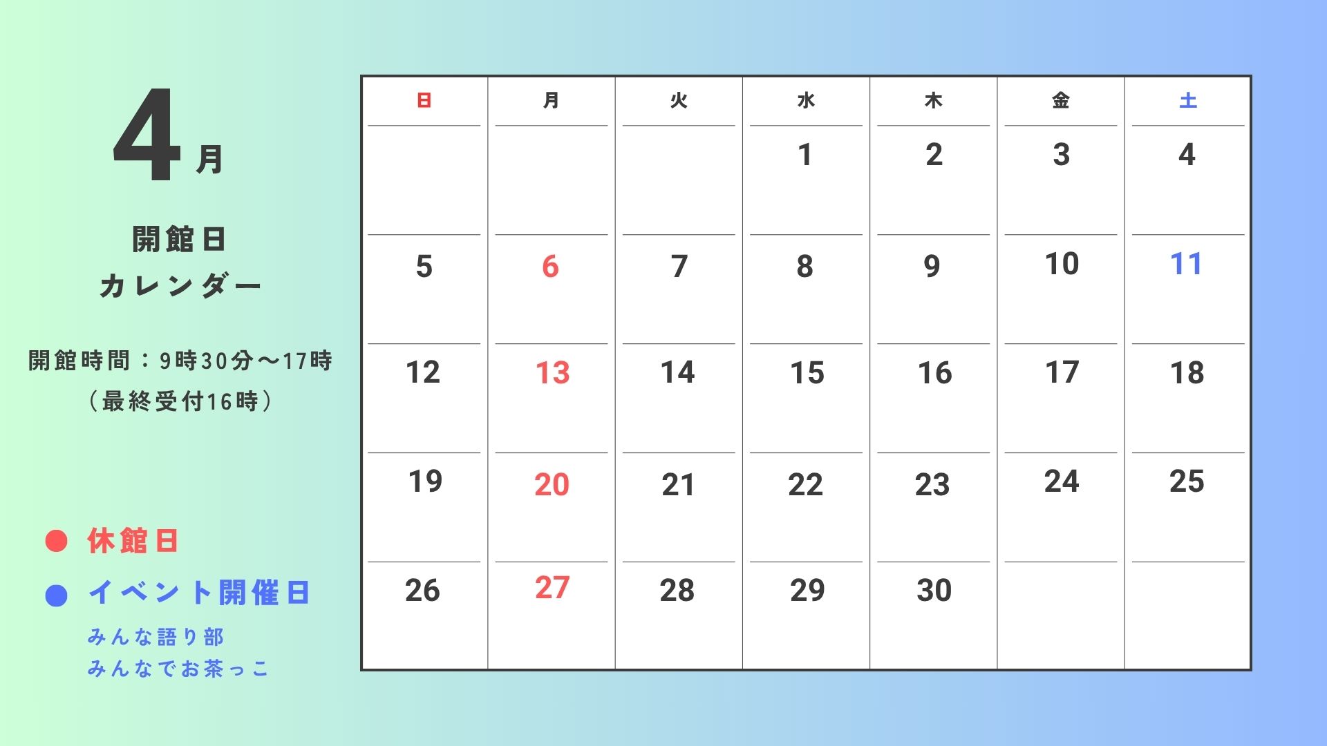4月開館情報のお知らせ