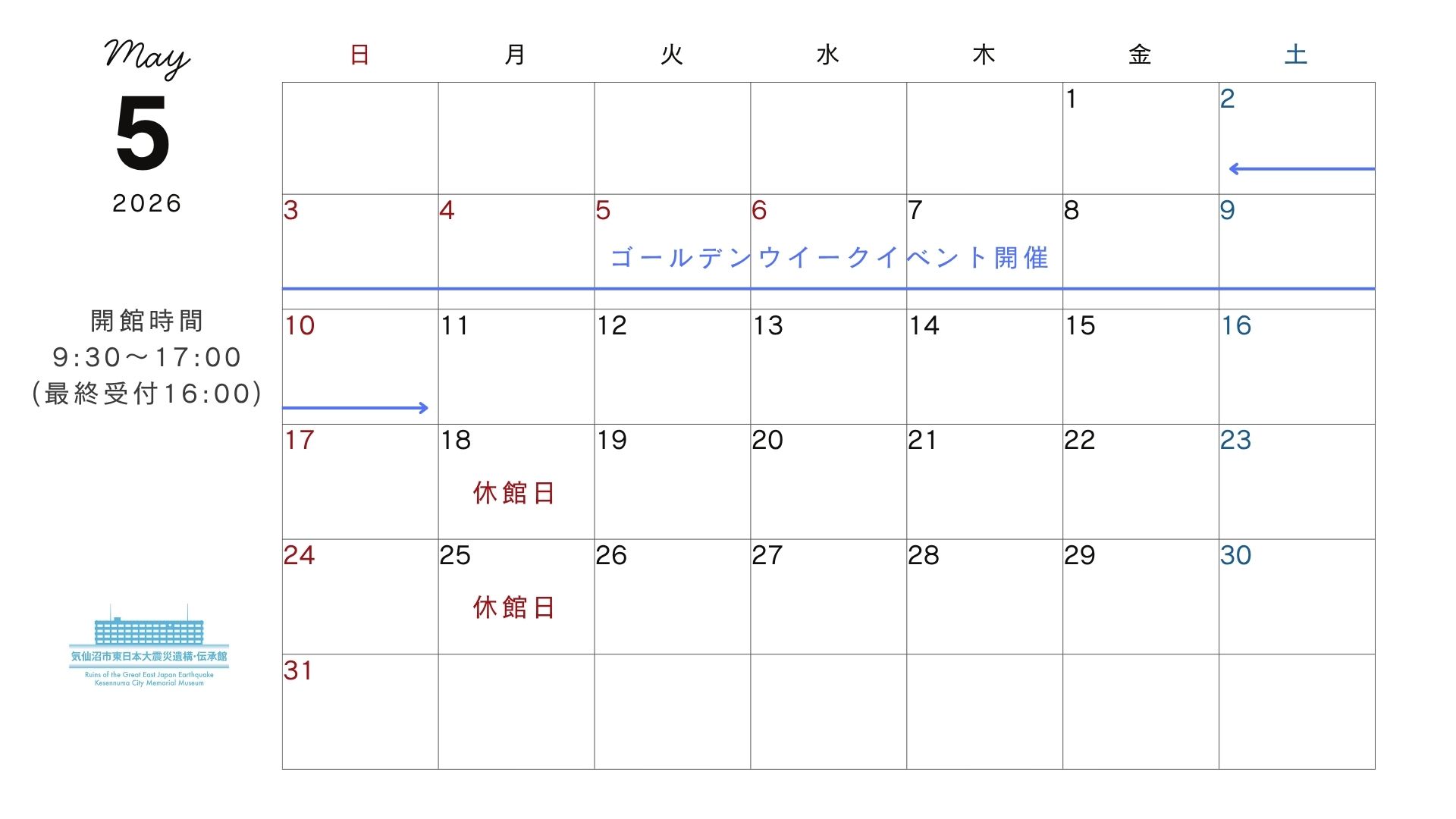 5月開館情報のお知らせ