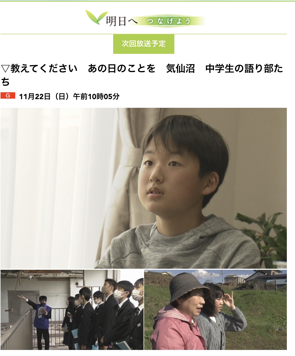 NHK「あの日、そして明日へ」おしえてください あの日のことを 気仙沼 中学生の語り部たち